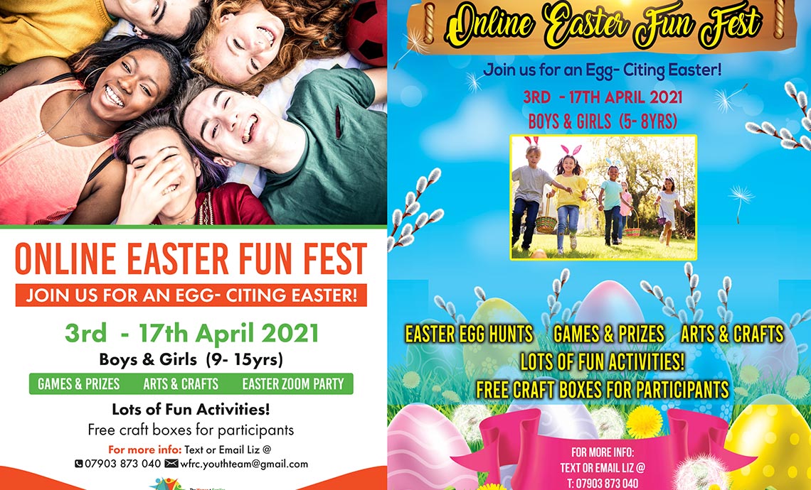 Join us for free fun and exciting activities for young people. From online games to arts & crafts and Easter zoom parties! There’s a jam packed week for youngsters aged 9 – 15 years!